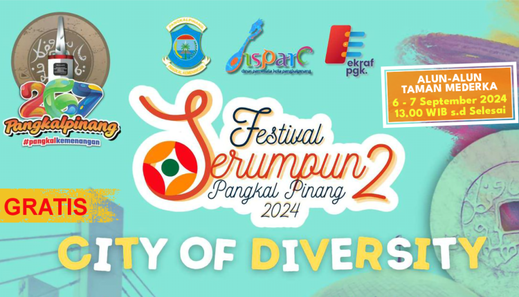 Pangkal Pinang, 29 Agustus 2024 – Kota Pangkal Pinang akan kembali memancarkan pesonanya melalui Festival Serumpun Pangkal Pinang 2 yang akan digelar pada 6-7 September 2024 di Alun-Alun Taman Merdeka. Dengan tema “City of Diversity,” festival ini siap mempersembahkan keragaman budaya dan kreativitas yang hidup dan tumbuh di tengah masyarakat Pangkal Pinang.